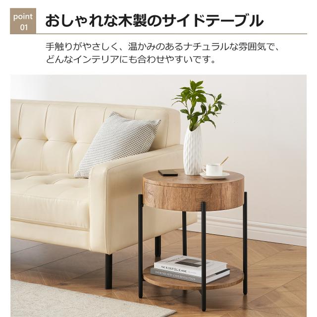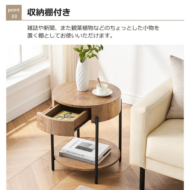 人気再入荷お試し価格 テーブル サイドテーブル 丸 おしゃれ 北欧 木製 丸型テーブル 2段 ナイトテーブル ベッドサイド ソファテーブル 円型 机 収納 引き出し 収納棚 センターテーブル ナチュラル インテリア リビング 寝室 玄関 一人暮らし 新生活