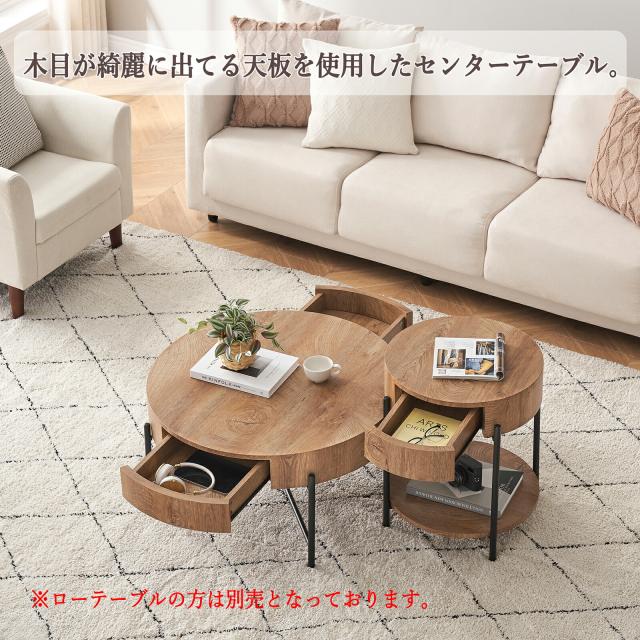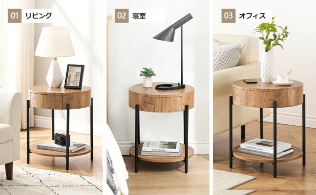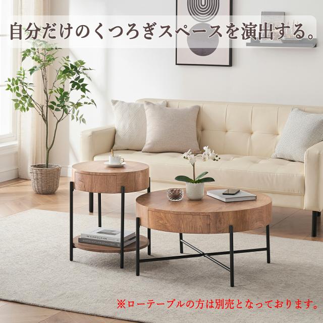 サイドテーブル おしゃれ センターテーブル 丸型 引き出し 収納棚付き 一人暮らしにもお勧めです。