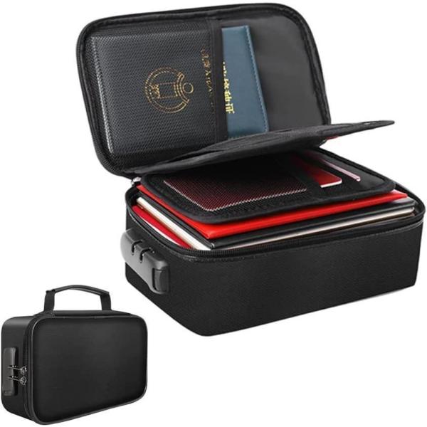 収納ポーチ 耐火バッグ 防水 防火 防災 耐熱温度1200℃ 手提げ パスワードロック付き マルチケース 多層収納 貴重品入れ pc周辺小物用 ケーブル収納 配線収納 現