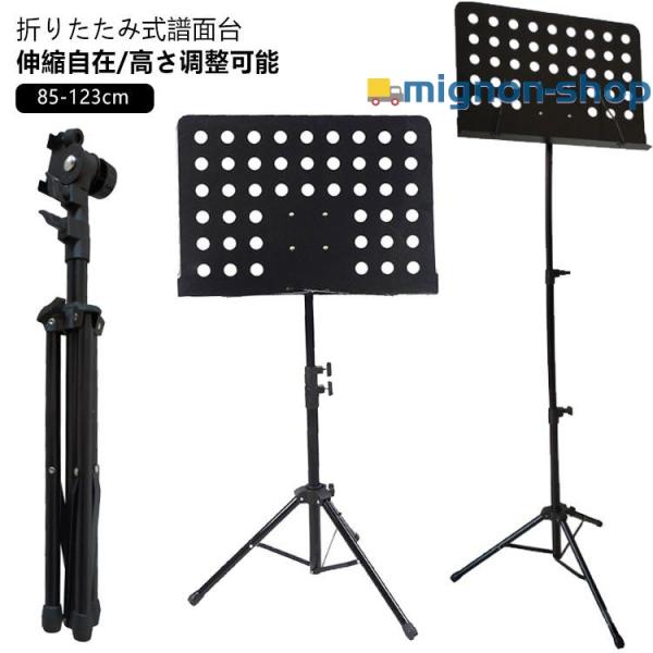 譜面台 折りたたみ 軽量 ミュージックスタンド 譜面立て 楽譜立て ケース 付き 高さ調節 角度調節 楽器 ギター 楽譜スタンド スチール 85-123CM