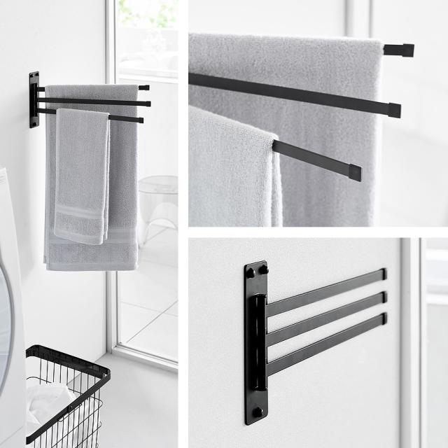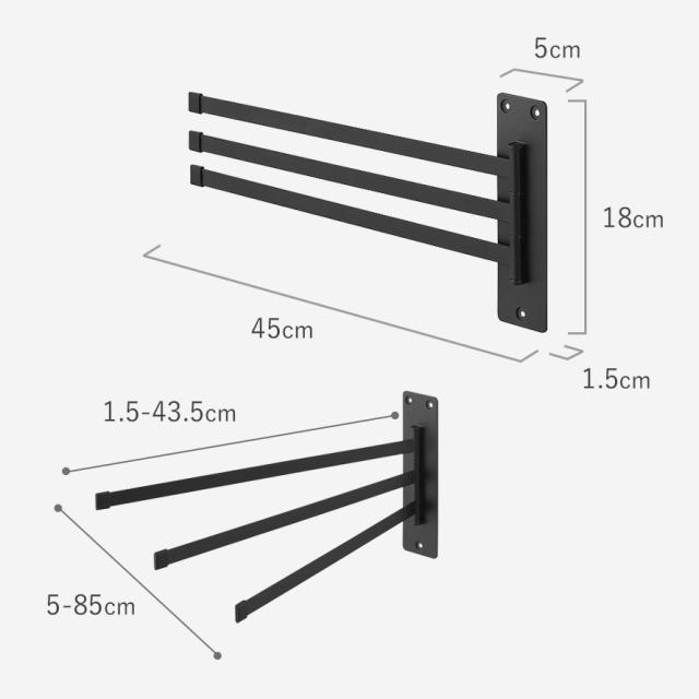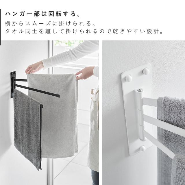 ハンガー部は180度左右に大きく開くため、タオル同士が重ならず、サッと掛けることができます。