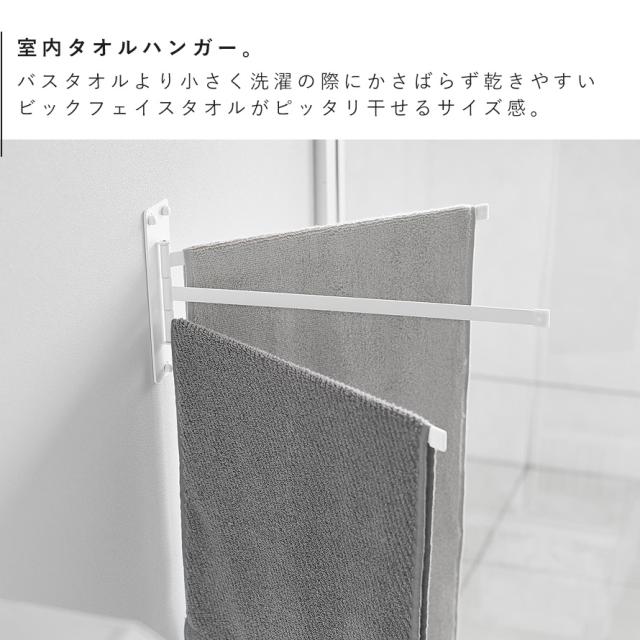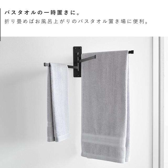 ビッグフェイスタオルがピッタリ干せるサイズ感で、お風呂上がりのバスタオルの一時置きとしても便利。