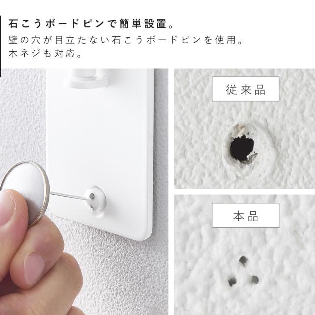 壁の穴が目立ちにくい石こうボードピンで簡単取り付け。