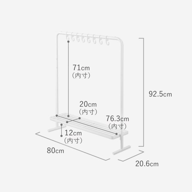 ■内寸サイズ:棚/幅76.3×奥行20cm フック下から棚上/高さ71cm 棚下/高さ12cm フック開口幅/2.7cm