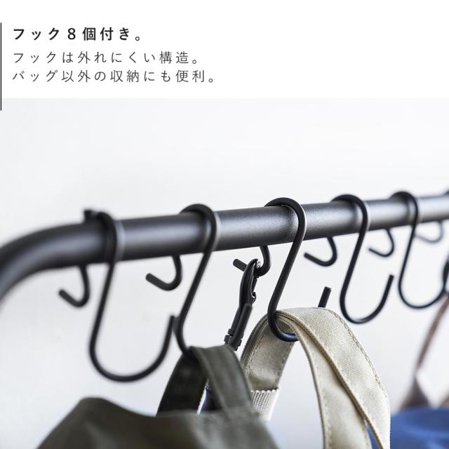 奥行きスリム設計で、バッグをすっきりまとめて収納できるラックです。