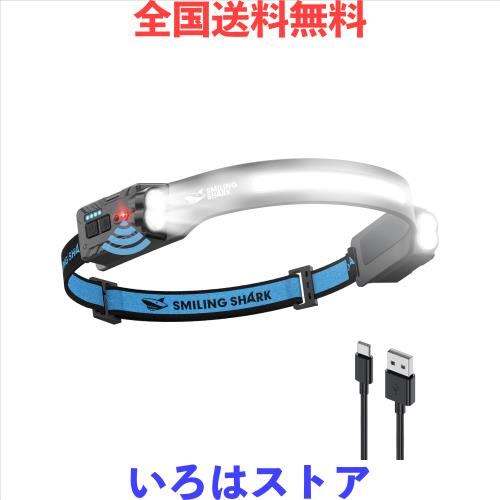 Smiling Shark ヘッドライト TD-0123-S 【2つの集光ライト・幅広い照射範囲】Type-C充電式 高輝度 LEDヘッドランプ 強力 5つ照明モード