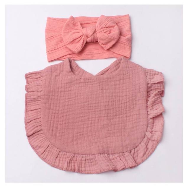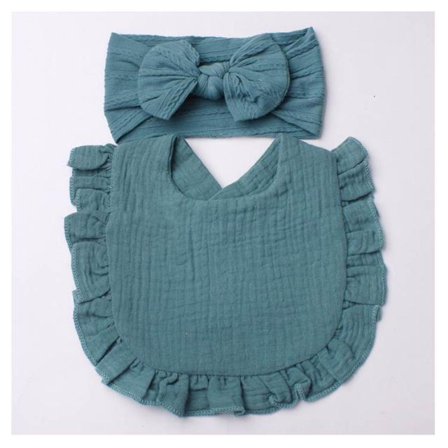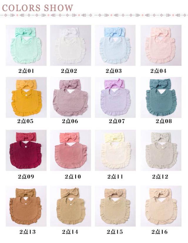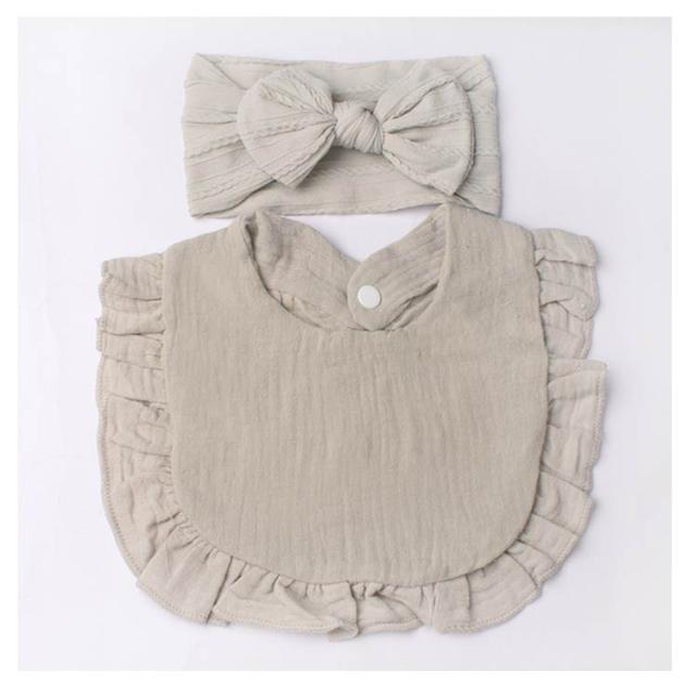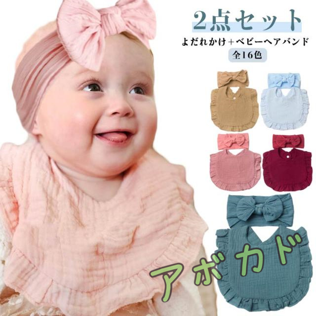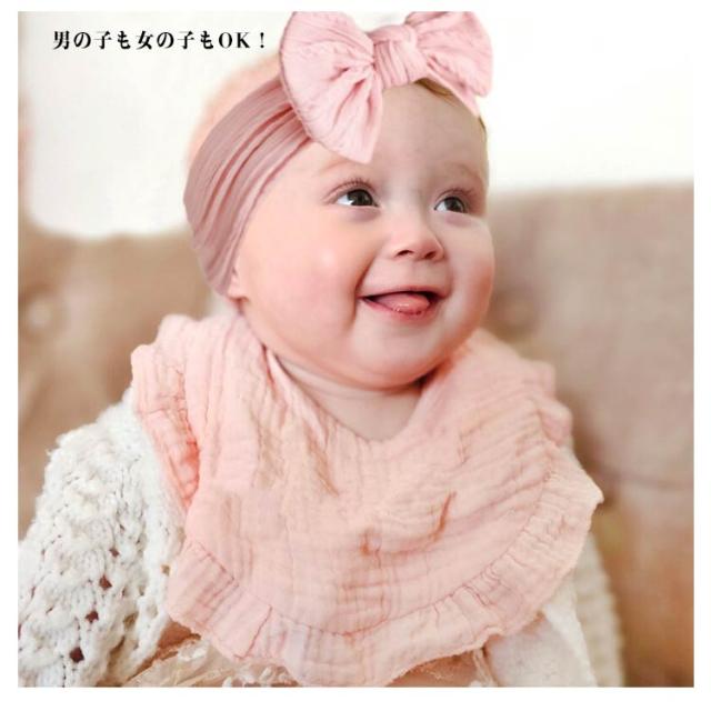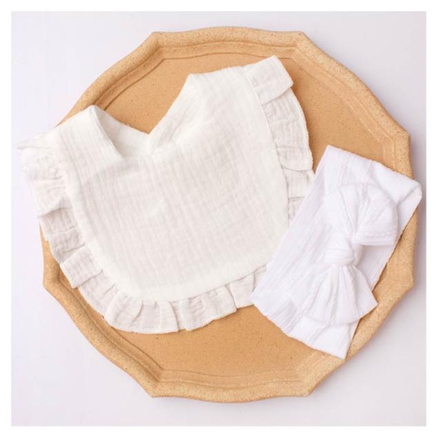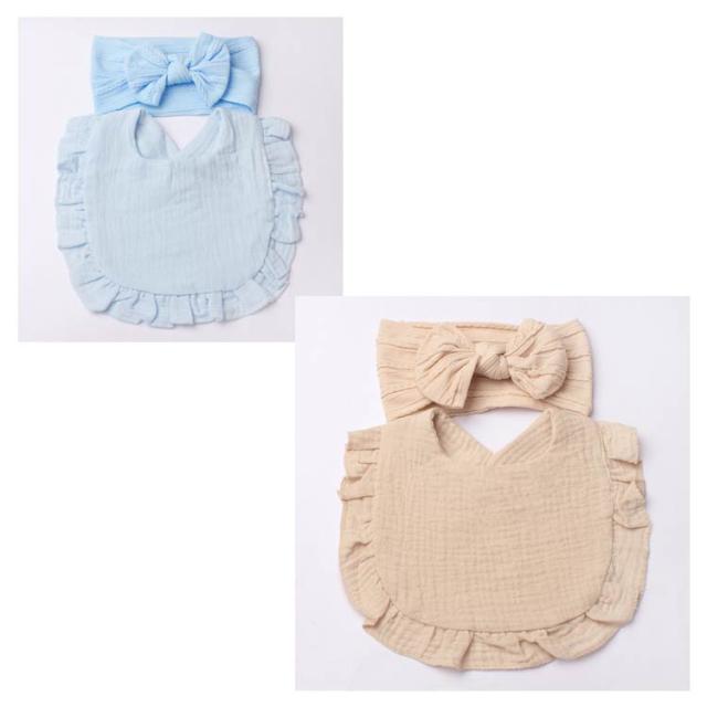 スタイ キッズ 出産祝い ビブ ガーゼ 赤ちゃん 可愛い ベビー Uネック おしゃれ よだれかけ+ベビーヘアバンド よだれかけ 綿 お食事エプロン 子供 2点セット 北欧 春 夏 ベビー用品 お祝い 結婚式 おしゃれ