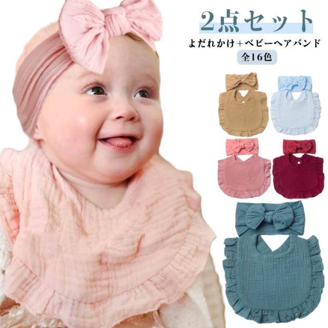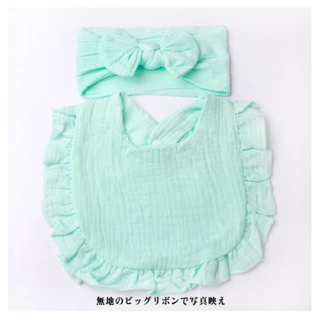 | 2点セット よだれかけ+ベビーヘアバンド 男の子も女の子もOK! 無地のビッグリボンで写真映え 出産祝いギフトにもぴったり! | |