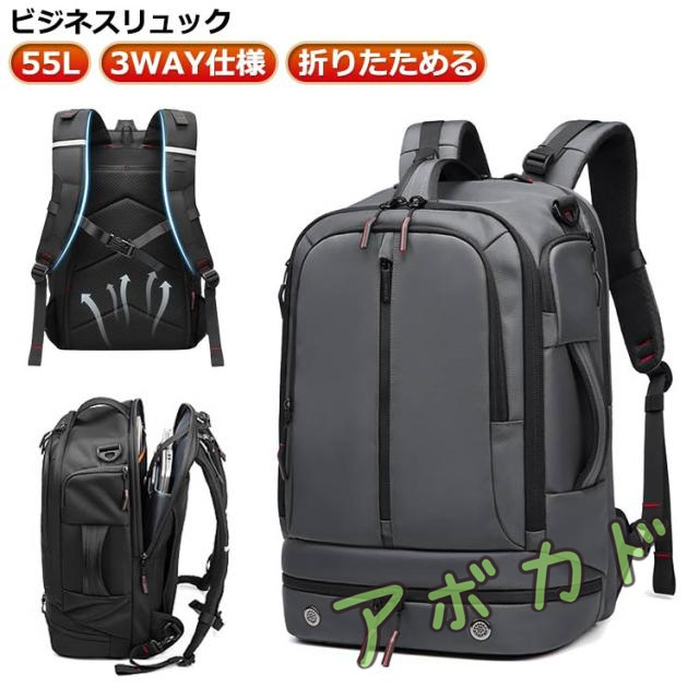 大人 撥水 大容量 pcバッグ 手提げ 防水 55L 3way リュックサック メンズ ビジネスリュック 軽量 ビジネスバッグ 通勤リュック A4 黒 靴収納 出張 旅行 ジム 防災 ナイロン 大きめ 通学 ビジネスリュック 大学生 丈夫 おしゃれ 折りたためる