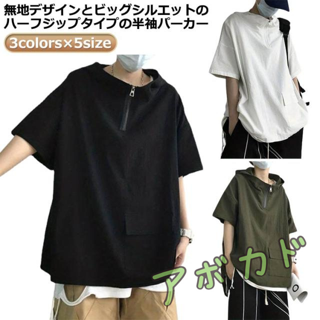 | 3colors×5size 無地デザインとビッグシルエットのハーフジップタイプの半袖パーカー どんなカジュアルな装いにもマッチ フード付きでカジュアルになりすぎず | |