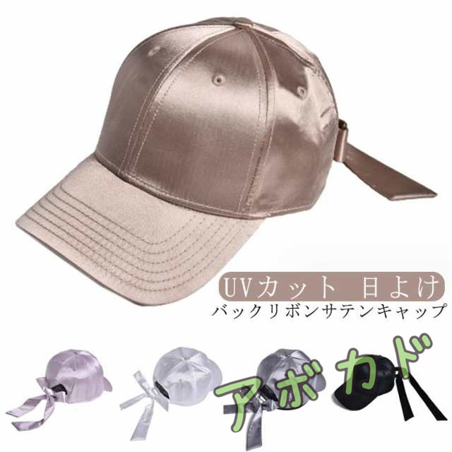 日よけ バックリボン サテン UVカット レディース 艶あり 後ろリボン バックリボン リボンキャップ キャップ 日焼け防止 帽子 スポーツ 可愛い おしゃれ 誕生日 プレゼント