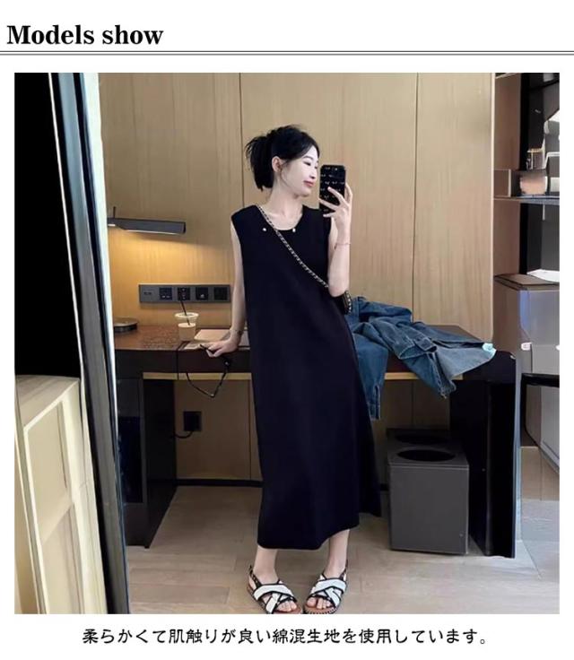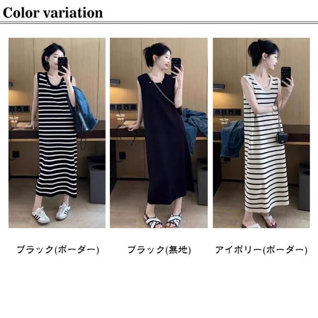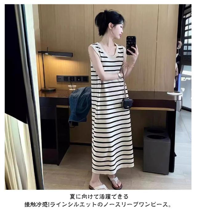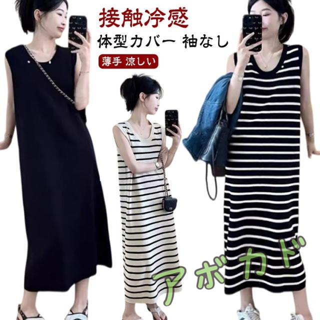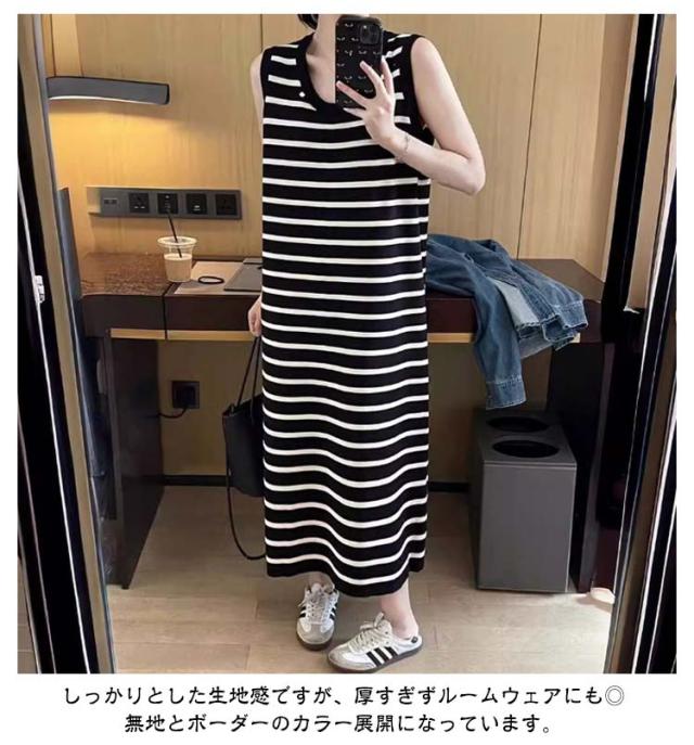 ボーダーワンピース ボーダー柄 体型カバー ノースリーブワンピース ナチュラル 夏 綿 レディース ワンピース ノースリーブワンピース 接触冷感 ゆったり ストレッチ 大人かわいい ルームウェア ロングワンピース 袖なし カジュアル 薄手 涼しい ひんやり 20代 30代 40代 50代