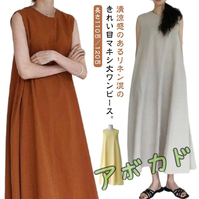 | 清涼感のあるリネン混のきれい目マキシ丈ワンピース。【長さ110cm/120cm】 程よく肉厚で透け感が気にならず、1枚でサラッと着用できるのも嬉しいポイント。 ノースリーブで華奢見え効果も期待できます ストンと落ちるシルエットが美しく、コーディネートを洗練された印象に導きます。 1枚でさらりと着たり、カーディガンを肩に巻いたりして着用がオススメ | |
