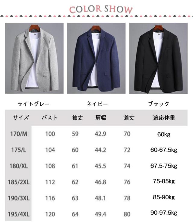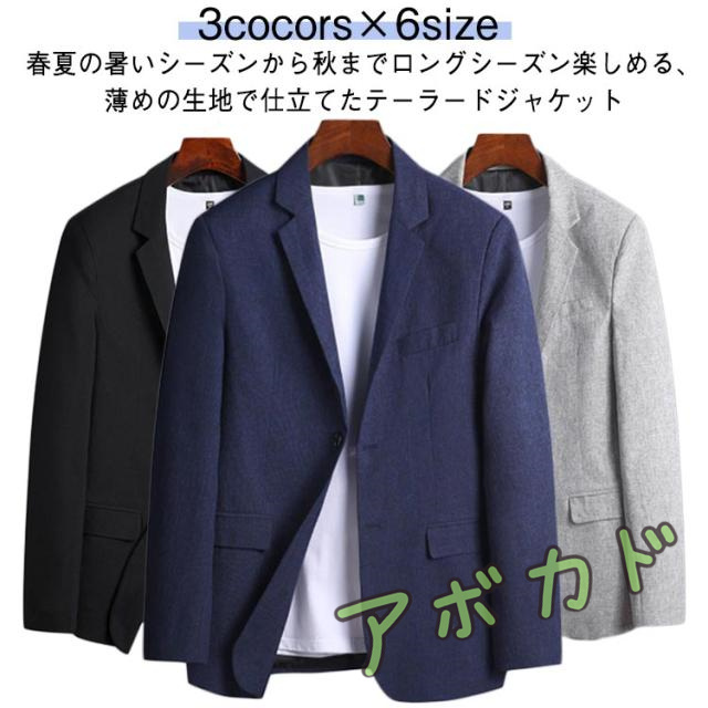 | 3cocors×6size 春夏の暑いシーズンから秋までロングシーズン楽しめる、薄めの生地で仕立てたテーラードジャケット カジュアルは勿論、ドレッシーでパーティーのジャケットコーデやゴルフの行き来にもお勧め | |