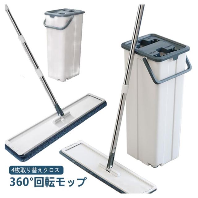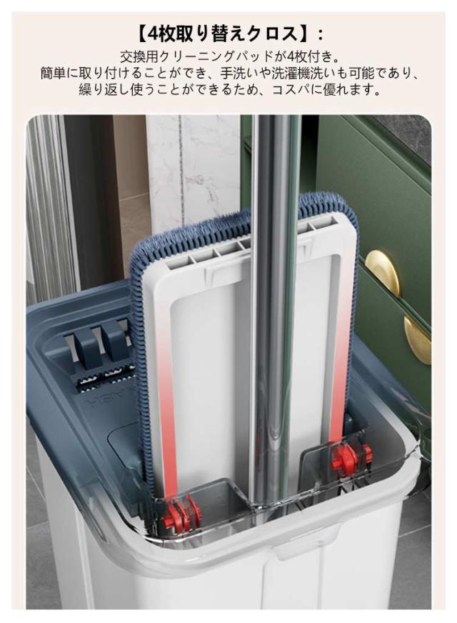 水拭きモップ 水拭き 家庭用 床拭きモップ 腰曲げず 手洗い不要 専用バケツ付き 掃除モップ 乾湿両用 玄関 床掃除 フローリング モップ 業務用 交換パッド4枚付き 清掃 フロアモップ 畳 ペット 室内 掃除道具 掃除用品
