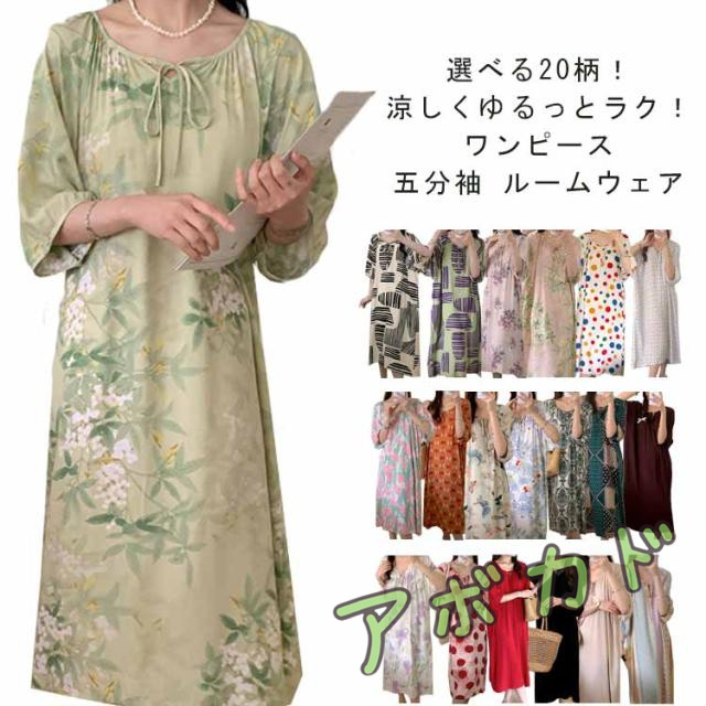 | 選べる20柄!涼しくゆるっとラク! ワンピース 五分袖 ルームウェア サラサラ通気性の良い素材だから汗でムレにくい! ゆったりとしたシルエットで締め付け感なく楽な着心地です。 二の腕をカバーする、ちょっと長めの袖丈もうれしい。 自宅でのリラックスタイムからちょっとしたお出かけまでマルチに活躍する! | |