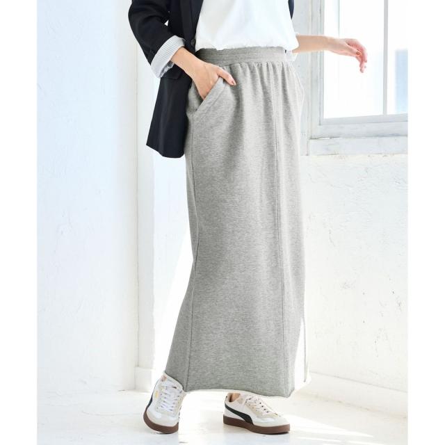 カジュアルな素材ながらもナローシルエットにすることで女性らしく仕上げたスカート。
