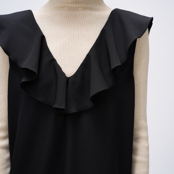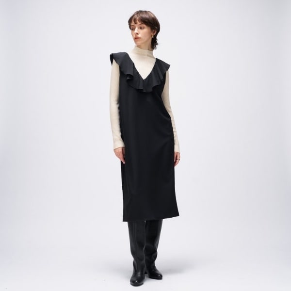 【オケージョン/手洗い可】フリルVネックジャンパースカート