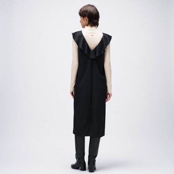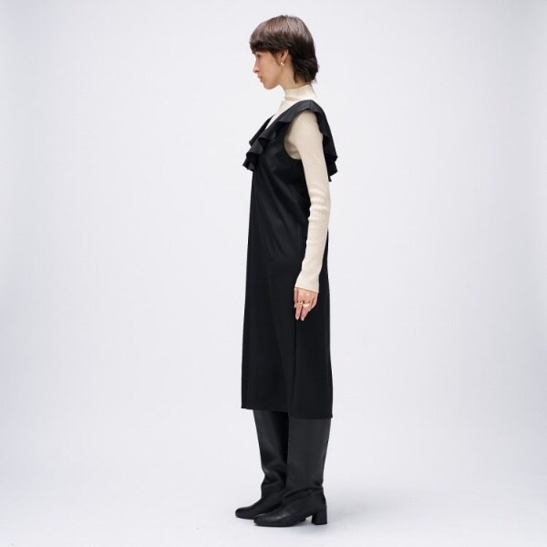 ・大胆なフリルデザインが一枚で華やかな印象を演出するジャンパースカート。フロントとバックにあしらったフリルが、動くたびに表情をプラスします。