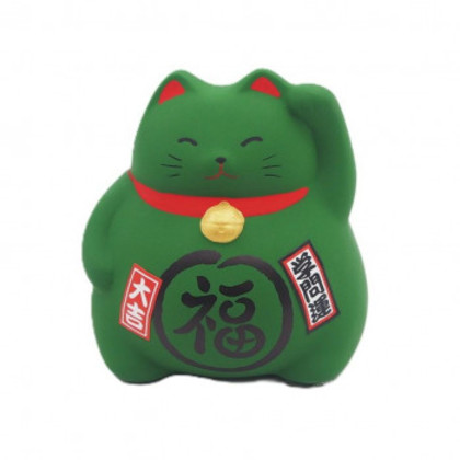 M7889 風水貯金箱 まる福招き猫 緑 萬古焼置物 |b03