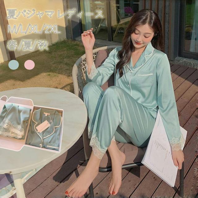 夏パジャマ レディース 長袖 半袖 パジャマ 夏 ルームウェア M L XL 2XL 部屋着 2点セット 上下セット ギフト おしゃれ