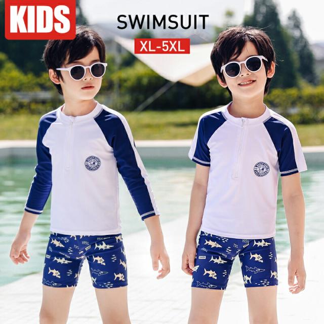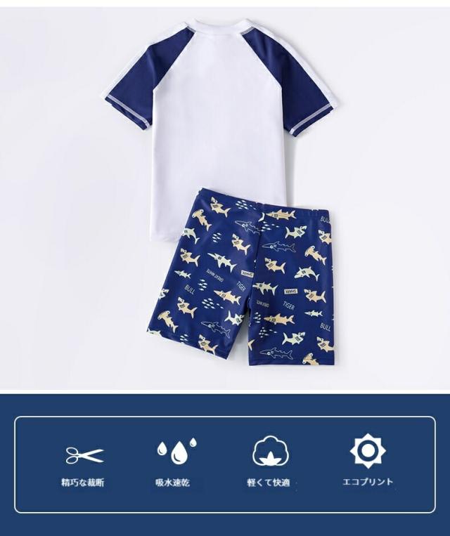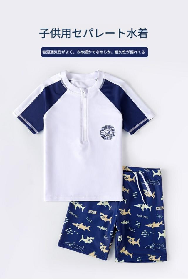 子供スクール水着 競泳水着 キッズ 水着 5-14 110cm-160cm 男の子 ラッシュガード パンツスクール水着 2点セット サメ ベビー夏 海 セパレート プール カバー付き スパ 水泳 レッ