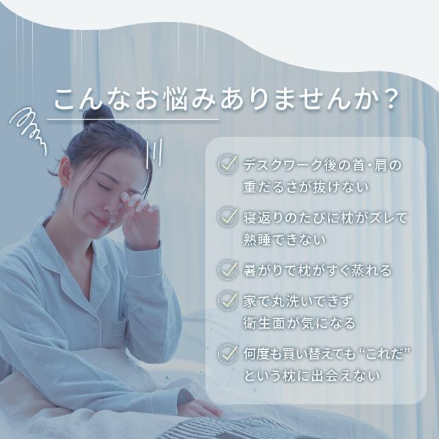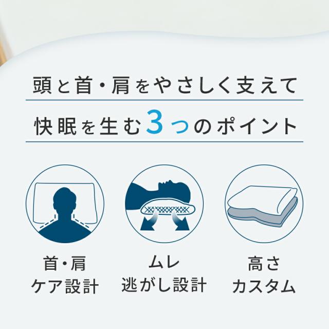 こり固まった首筋も、寝汗で蒸れる夜も。”やさしいかたさ”で朝まで快眠へ導きます。