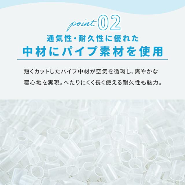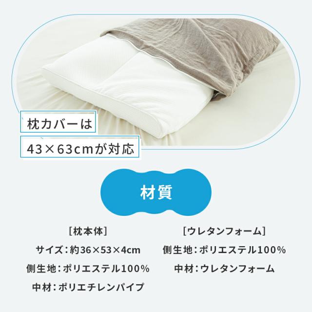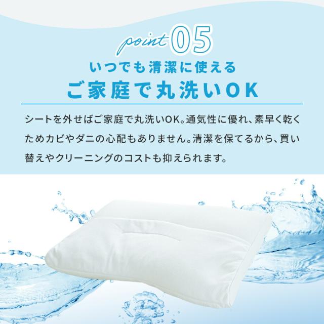 | point01 凹型×アーチで 首肩ジャストフィット アーチ形状が首・肩のすき間を埋め、中央のくぼみで後頭部を支えます。寝返りもスムーズで朝まで安定。 point02 通気性・耐久性に優れた 中材にパイプ素材を使用短くカットしたパイプ中材が空気を循環し、爽やかな寝心地を実現。へたりにくく長く使える耐久性も魅力。 point03 2種類の生地を使用で快適 ニット生地&メッシュ生地肌面はふんわりニット、後頭部と側面はメッシュ。熱と湿気を逃がしてムレを防ぎ、一晩中さらっと快適。 Original Color White当社オリジナルのホワイトカラーの側生地。清潔感に加えて汚れの変化がわかりやすく、毎日を気持ちよく使えます。 point04 ウレタンシートとパイプの調整で 簡単高さ調節シートとパイプで細かい高さ調節ができます。さっとシートを抜き差しするだけでも調節できるので、誰でも簡単に自分にぴったりの枕が作れます。 point05 いつでも清潔に使える ご家庭で丸洗いOKシートを外せばご家庭で丸洗いOK。通気性に優れ、素早く乾くためカビやダニの心配もありません。清潔を保てるから買い替えやクリーニングのコストも抑えられます。 point06 自社倉庫で製造 安心の日本製お客様に安心していただける商品をお届けするため、まくら作りの最終工程であるパイプの充填・加工作業を当店スタッフが手作業で行い、出荷しています。 | |