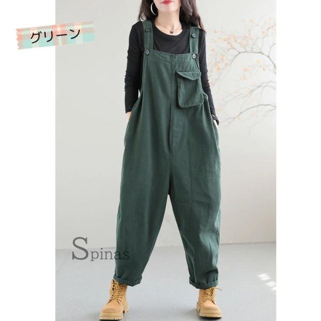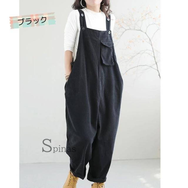 ゆったりサルエル調のお洒落オーバーオー オールインワン サロペット 続々入荷中 ブラック グリーン L(50-70kgくらい) XL(70-90kgくらい)