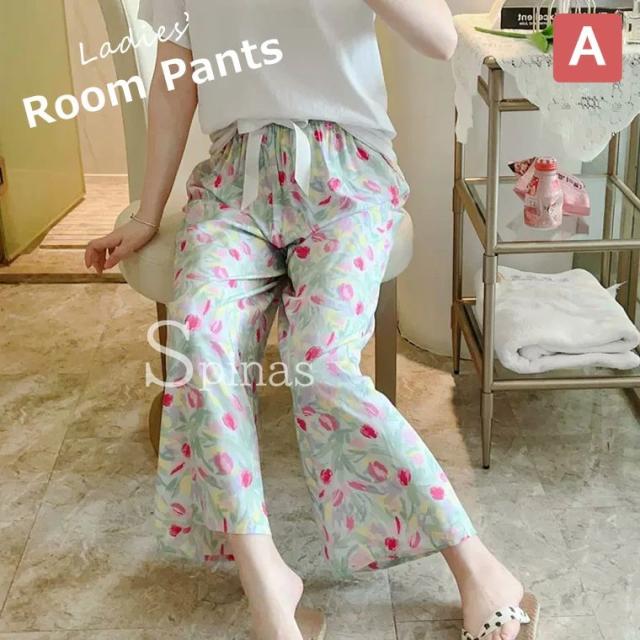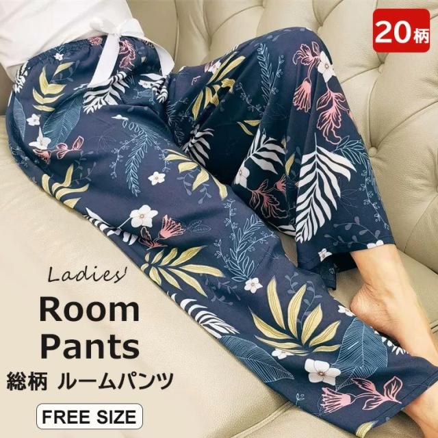 薄手でサラッとした生地なので春や夏にピッタリ レディース ルームパンツ オシャレ ズボン パジャマ 部屋着 総柄 柄パンツ ロング丈 大人 ルームウェア 春夏 リラックス 楽ちん パンツ 柄
