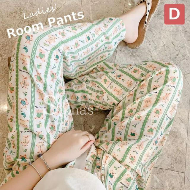 お洒落な総柄のレディース用ルームウェアズボンです。