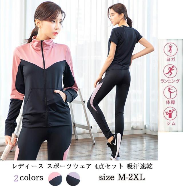 レディース スポーツウェア ヨガウェア 4点セット トレーニング ランニング 吸汗速乾 ゆっとり 上下セット オールシーズン
