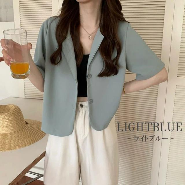 カジュアルコーデにきちんと感をプラスしてくれる半袖テーラードジャケットです