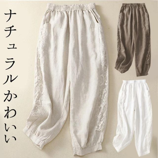 個性的な可愛らしさ 40代 50代 コクーンシルエット リネンパンツ さらりと履ける 重ね着 レイヤード ワンピースと合う リネン 麻 インナー ペチパンツ ロング ペチコート レースインナー バレル