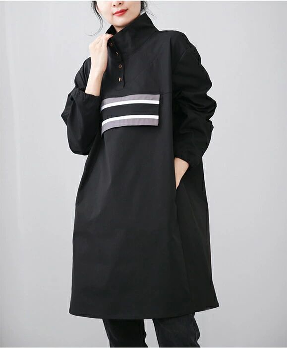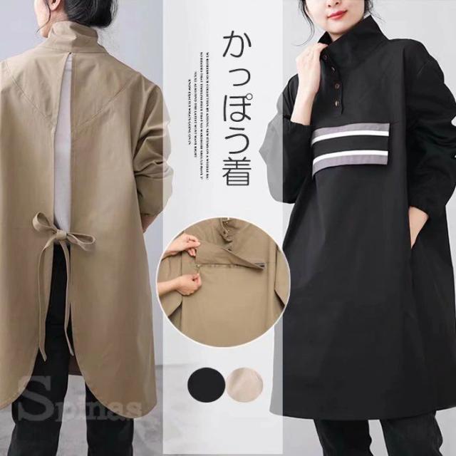 チュニック感覚で着こなせる エプロン ハイネック 割烹着 袖あり 長袖 ポケット付 作業エプロン スモック オシャレ ゆったり 撥水