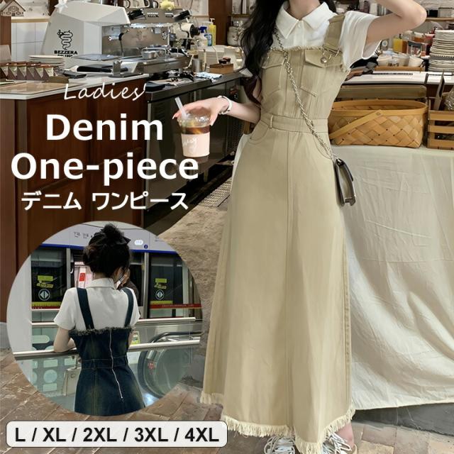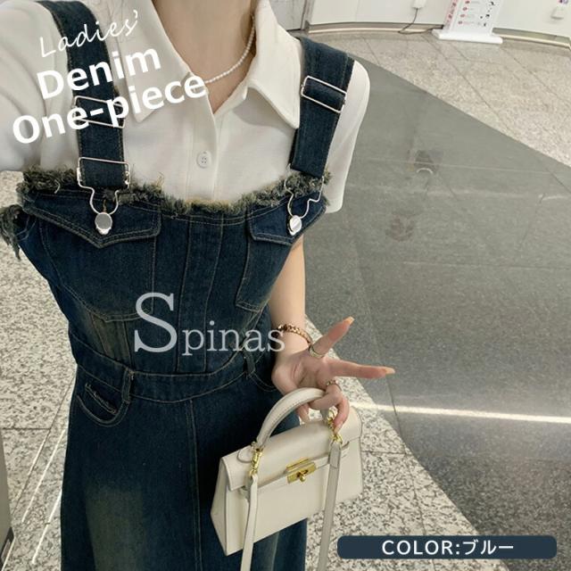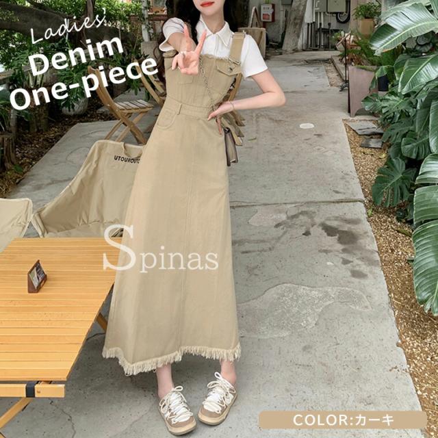 カジュアルな中に女性らしさも ♪デニム サロペット ワンピース 個性的 デニム Aライン オールインワン フリンジ 単品 レトロ マキシワンピース ジャンバースカート ストラッ