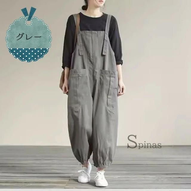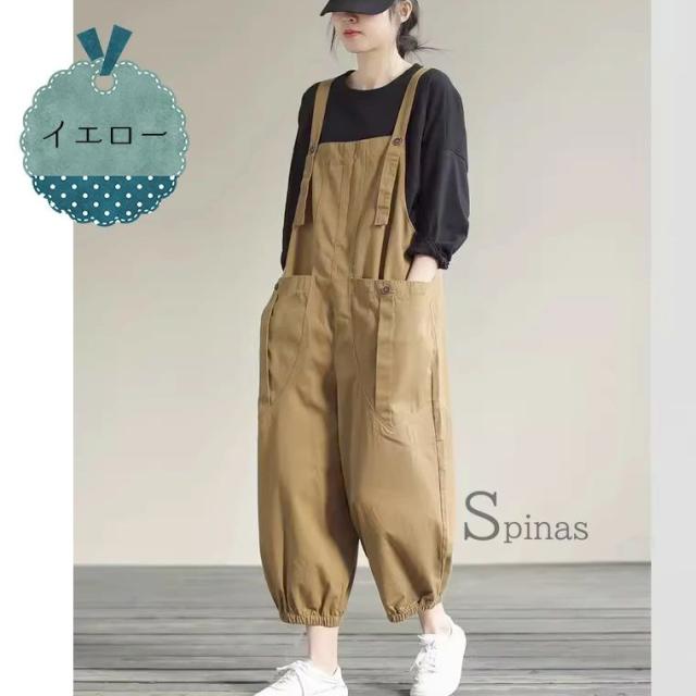 M-2XLサイズ ゆったりサルエル風 オールインワン サロペット 続々入荷中 グレー イエロー M L XL 2XL