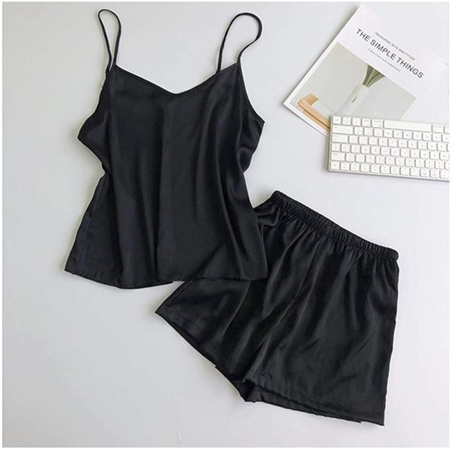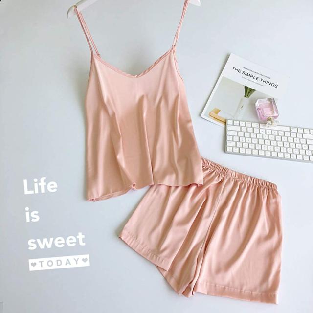 サテンの光沢がかわいらしさを演出 サテン調 ルームウェア キャミソール 上下セット パジャマ ナイトウェア 無地 部屋着 全6色