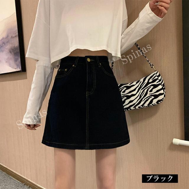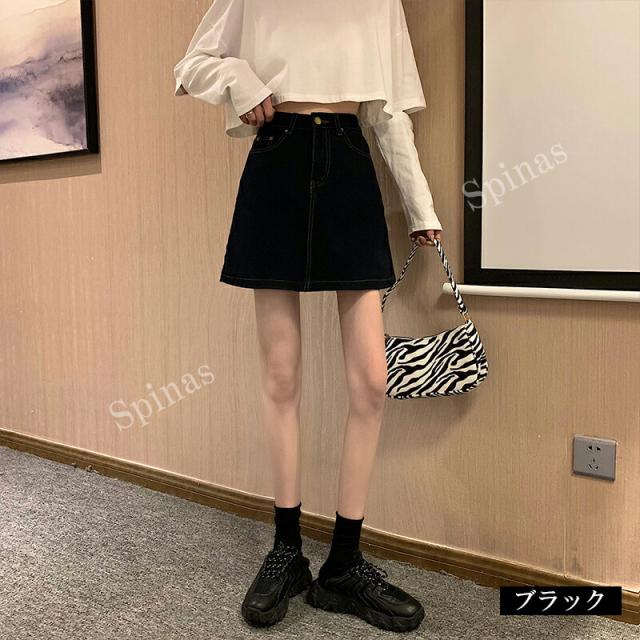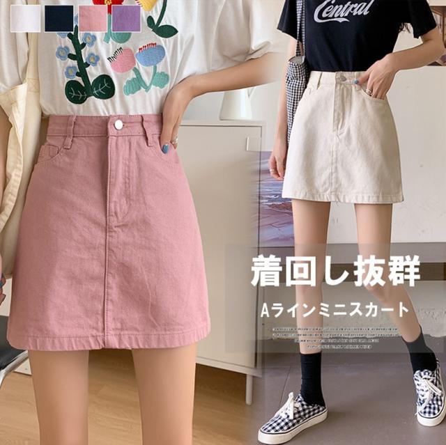 台形ラインがミニスカートを可愛くキュートに ♪4色展開 カラーデニム 台形 ミニスカート レディース ボトムス Aラインスカート ジーンズ シンプル 台形スカート ミニ タイト 体型カバー