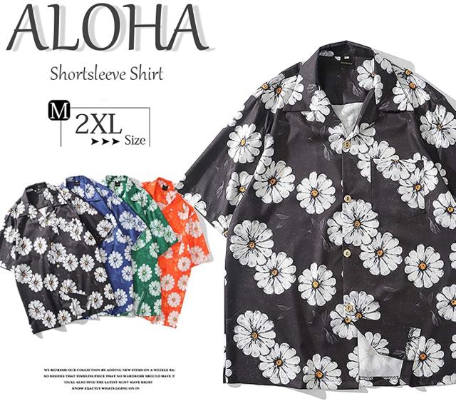 リゾート感満点な夏の 1枚 男女兼用 トップス カジュアルシャツ 新作 M L XL 2XL ブラック ブルー オレンジ グリーン