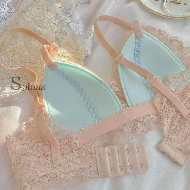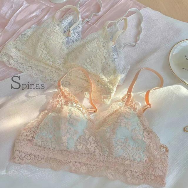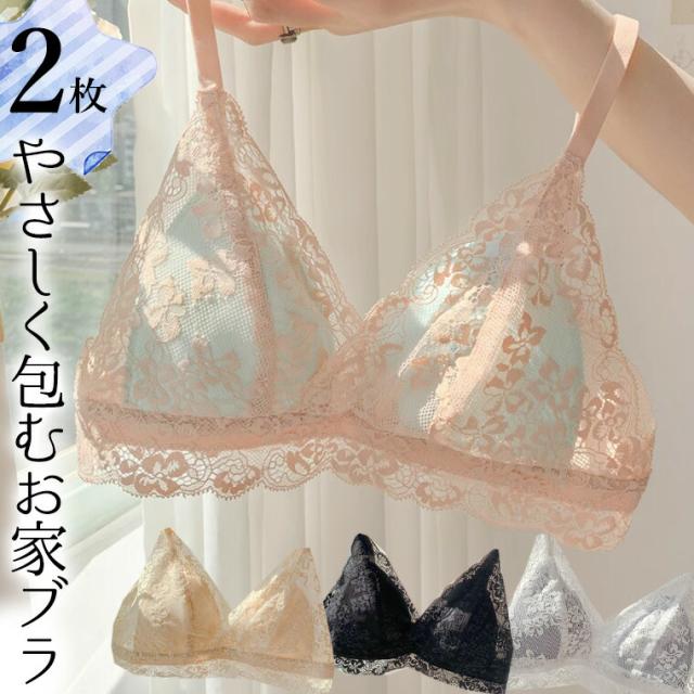 2枚セット レースで優しく心地よく包む 楽でかわいい頑張らないブラ 三角ブラ シンプルブラ ワイヤーレス ノンワイヤーブラ 盛らない おしゃれ ブラレット やわらか リラックス 楽ちん