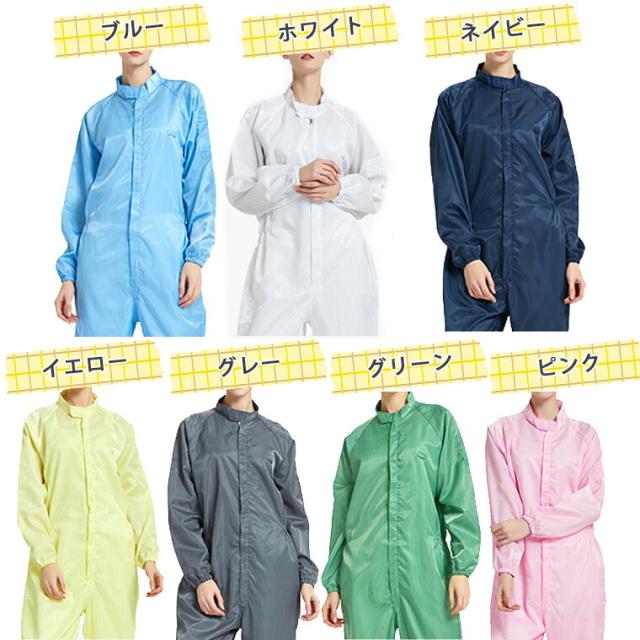 男女兼用 ユニセックス 静電気防止 作 作業服 つなぎ 新作 グリーン ブルー ホワイト ネイビー グレー ピンク イエロー S M L XL(2L) XXL(3L) XXXL(4L) XXXXL(5L)