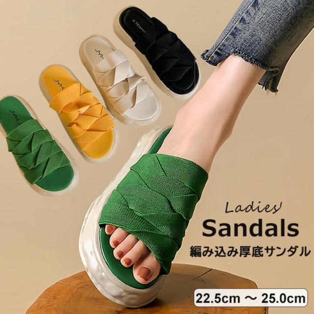 サンダル 編み込みサンダル 厚底サンダル シューズ レディース 厚底 ボリューム ソール約4cm ビーチサンダル サマーサンダル 無地 カジュアル オシャレ スリッパ 全4色