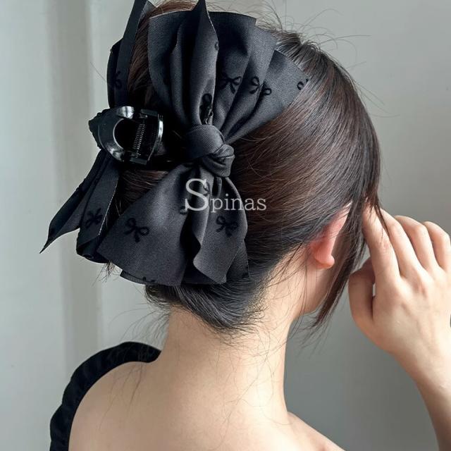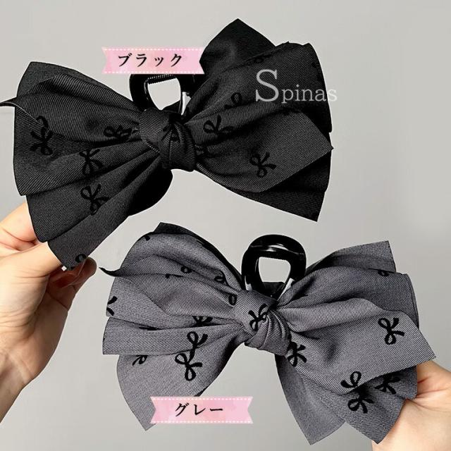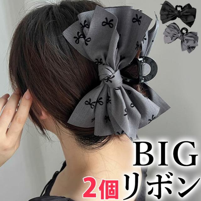 2個セット 特大リボン リボン柄 はさ レディースジュエリー アクセサリー ヘアアクセサリー ヘアクリップ 人気 ブラック2個 グレー2個 ブラック&グレー