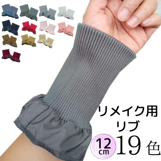 2個組 19色 ロング12cm 袖口から防風 お洒落に見せる ジャケット用リメイクリブ ペア 左右セット 付け袖 ニット リストバンド 付け袖口 アームウォーマー オリジナル リブニット 手首ガード