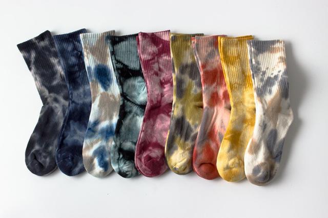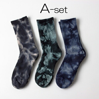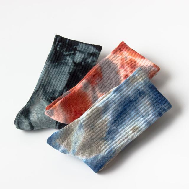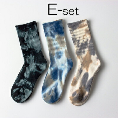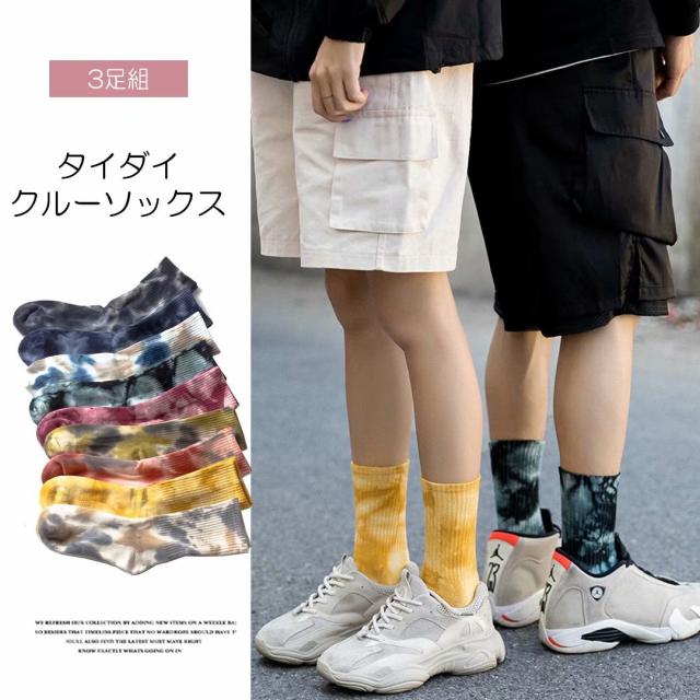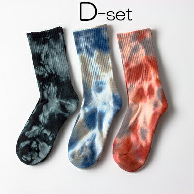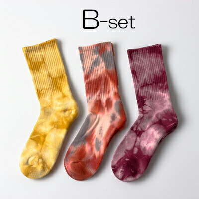 足元のオシャレを楽しめる 3足組 セット タイダイ染め スポーツ ソックス ミドルソックス 靴下 男女兼用 秋冬
