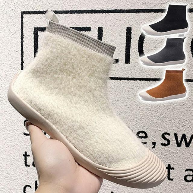 ムートンでもボアでもない 新しくお洒落なニットブーツ ムートン風ブーツ ボアブーツ ハイカット リブ スニーカー フラット