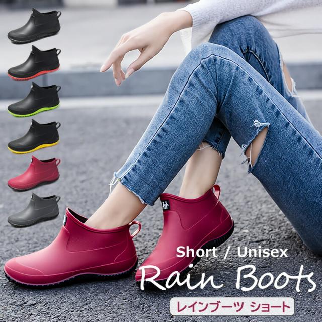 レインブーツ レインシューズ ショート丈 ユニセックス メンズ レディース 男女兼用 ペア カップル お揃い 履きやすい ショート 防水 快適 ゴム レジャー 通勤 カラフルソール 全6色