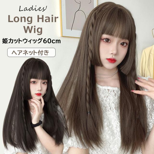 デイリー使いにもコスプレにもピッタリな人気の姫カットフルウィッグ♪ ウィッグ 姫カット 60cm レディース ストレート ロング フルウィッグ wig かつら コスプレ ロリータ ネット付 全2色
