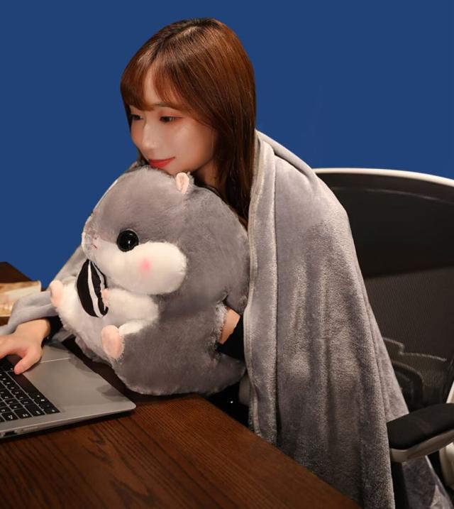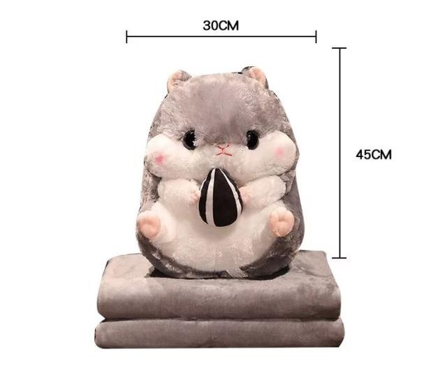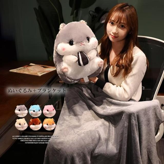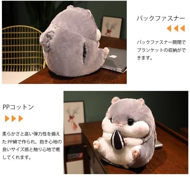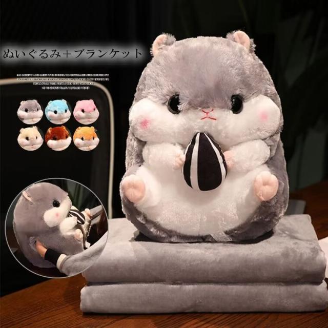 癒しの時間をお楽しみいただけるぬいぐるみ2点セット ハムスター ぬいぐるみ ブランケットひざ掛け 車内用 室内用 クッション 抱き枕 かわいい お昼寝毛布 折りたたみ毛布多機能枕